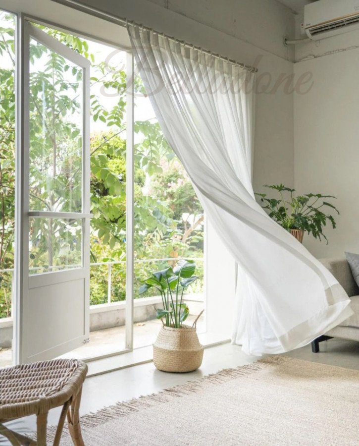 - Функциональность: Шторы из шифона помогают зонировать пространство, не перегружая его, и создают ощущение простора и легкости.