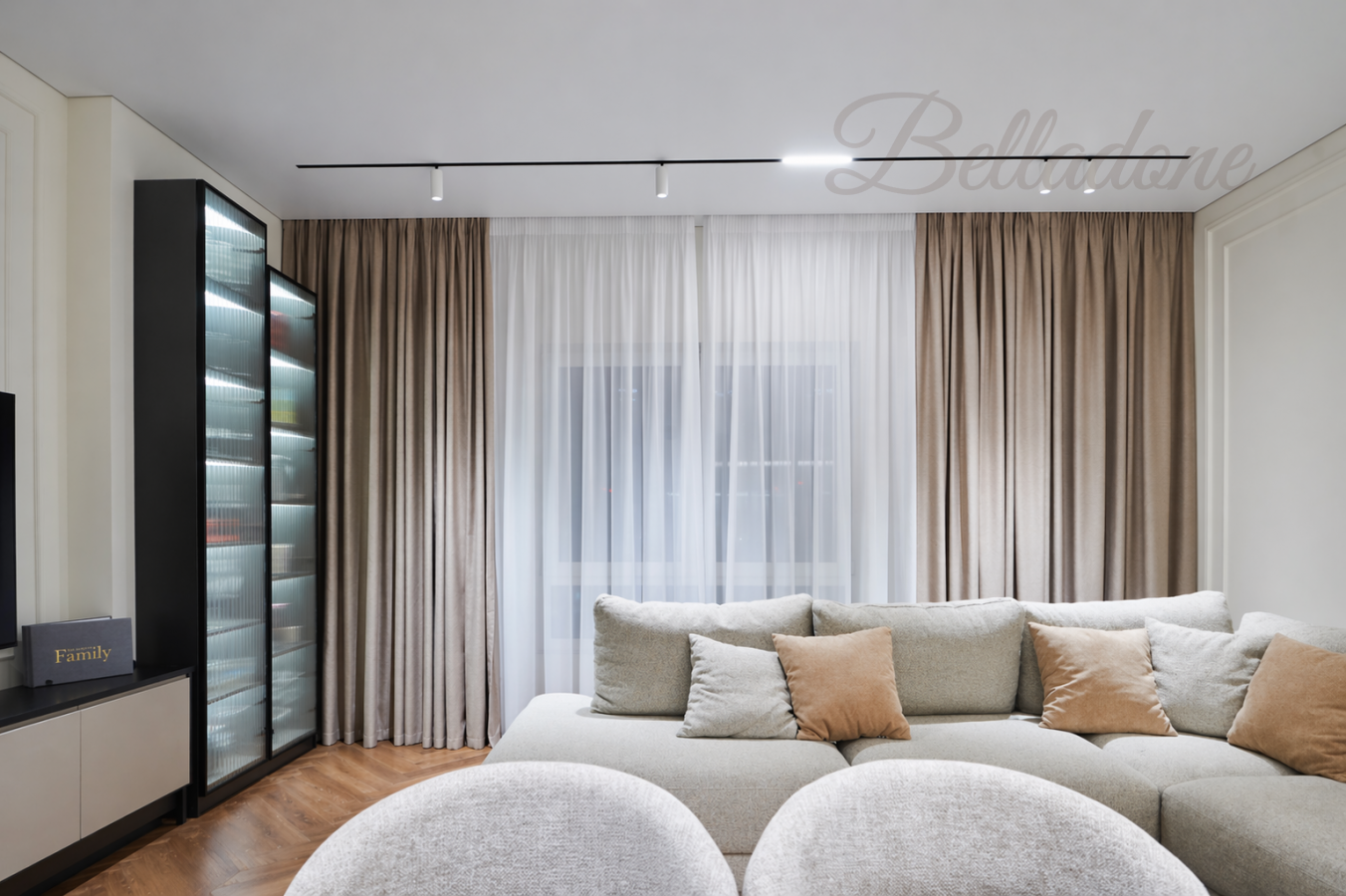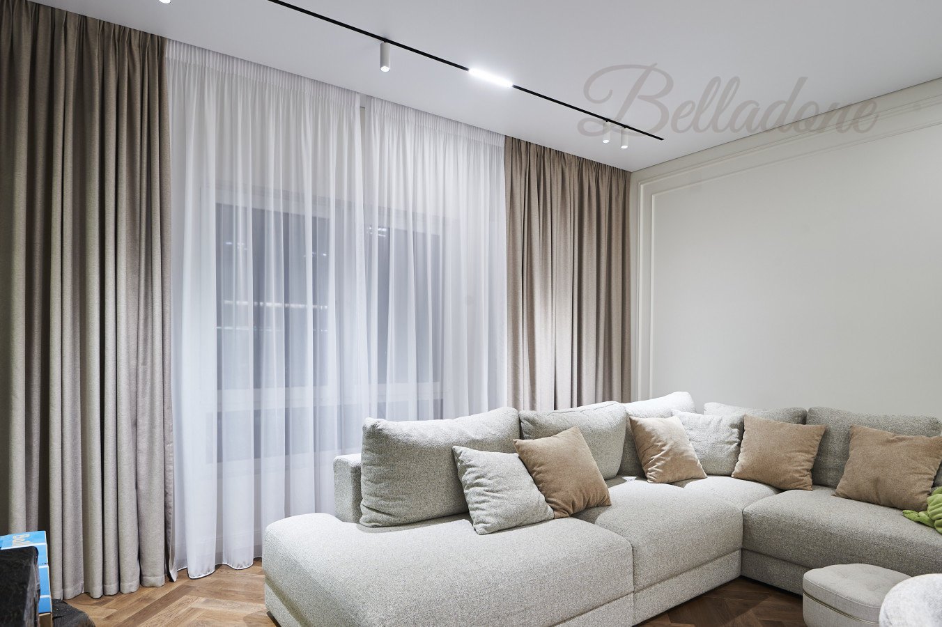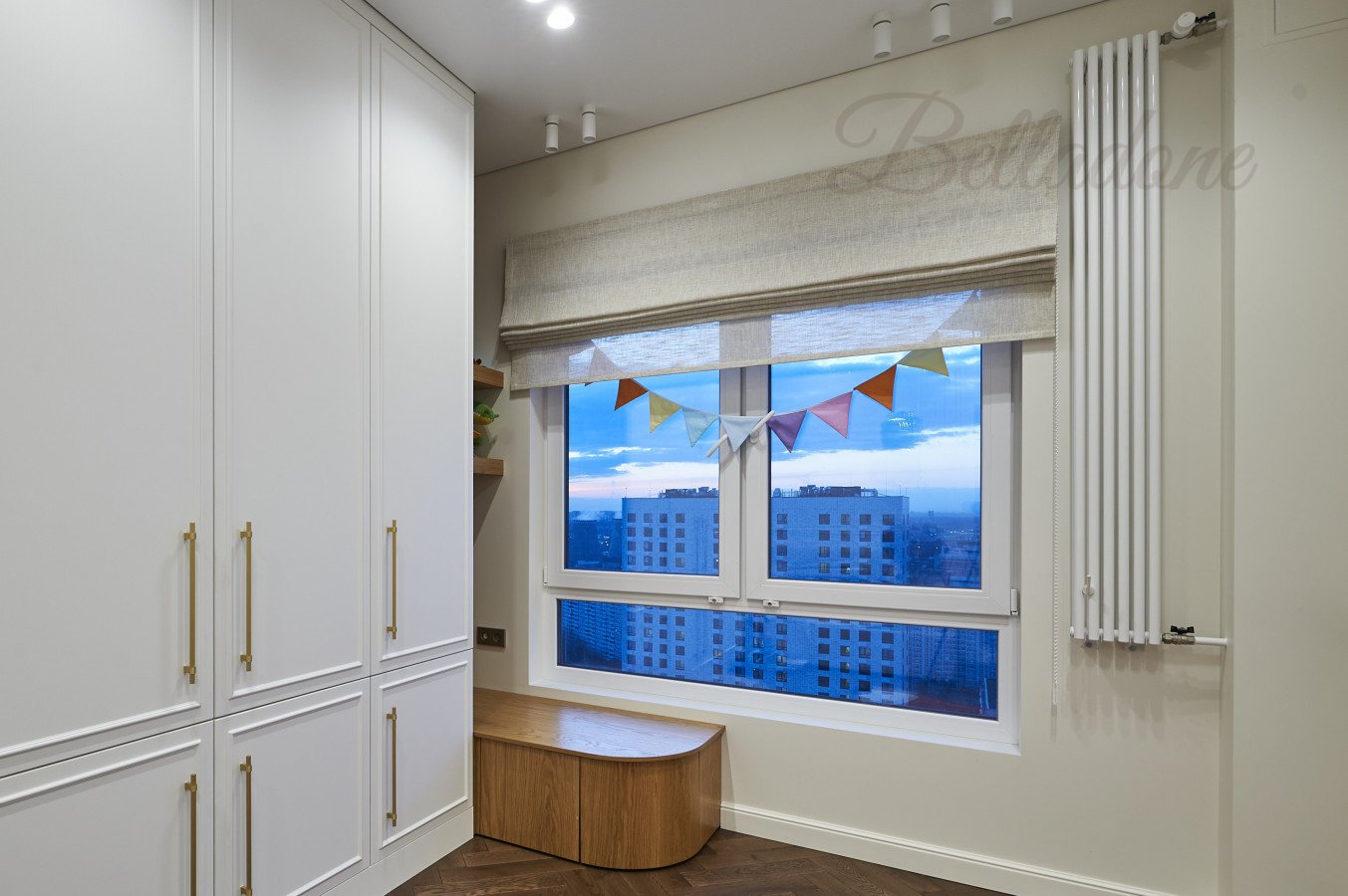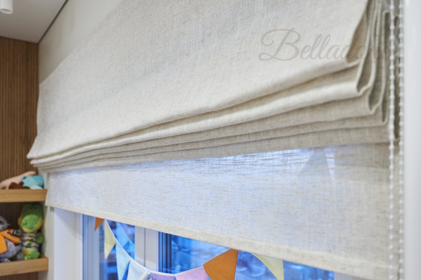 Пошив льняной римской шторы в детской и комплекта штор в гостиной, ул. Лобненская